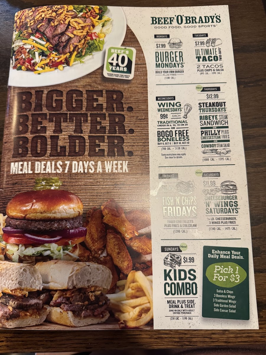 Introducing the Menu at Beef 'O' Brady's - Lakeland